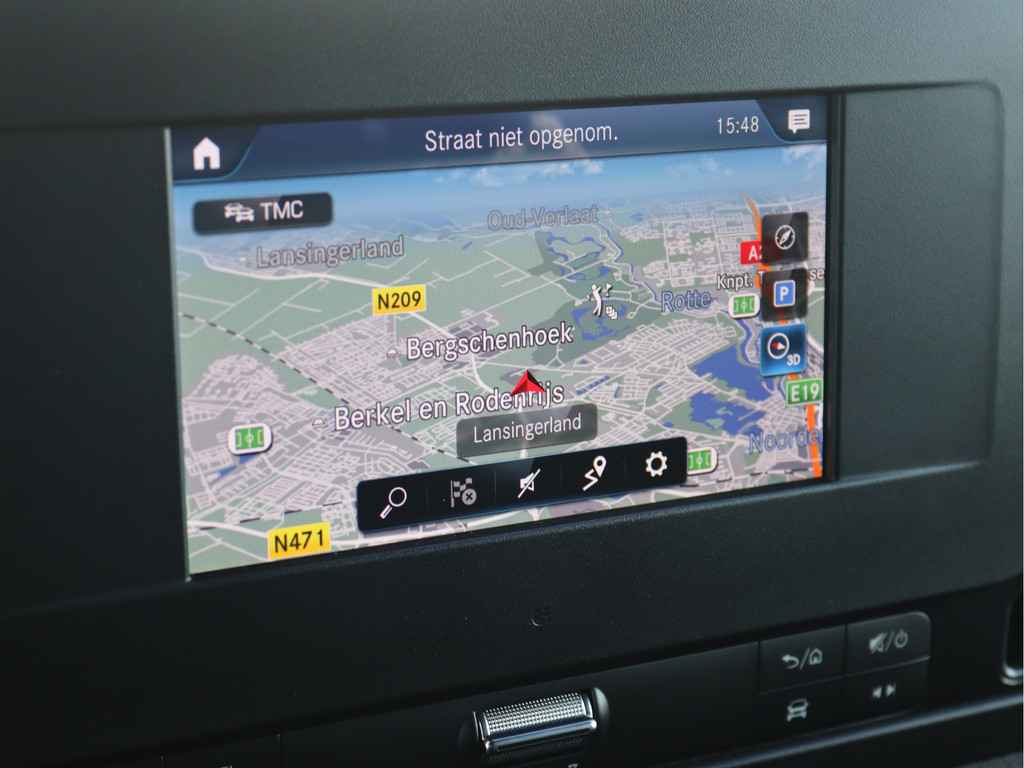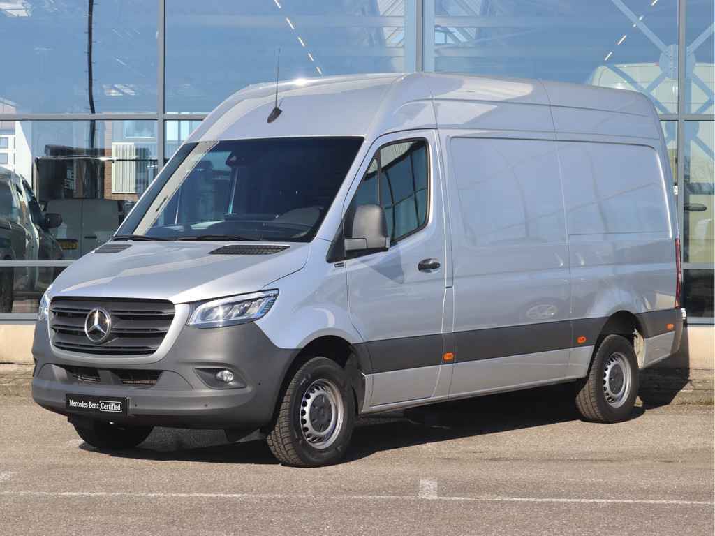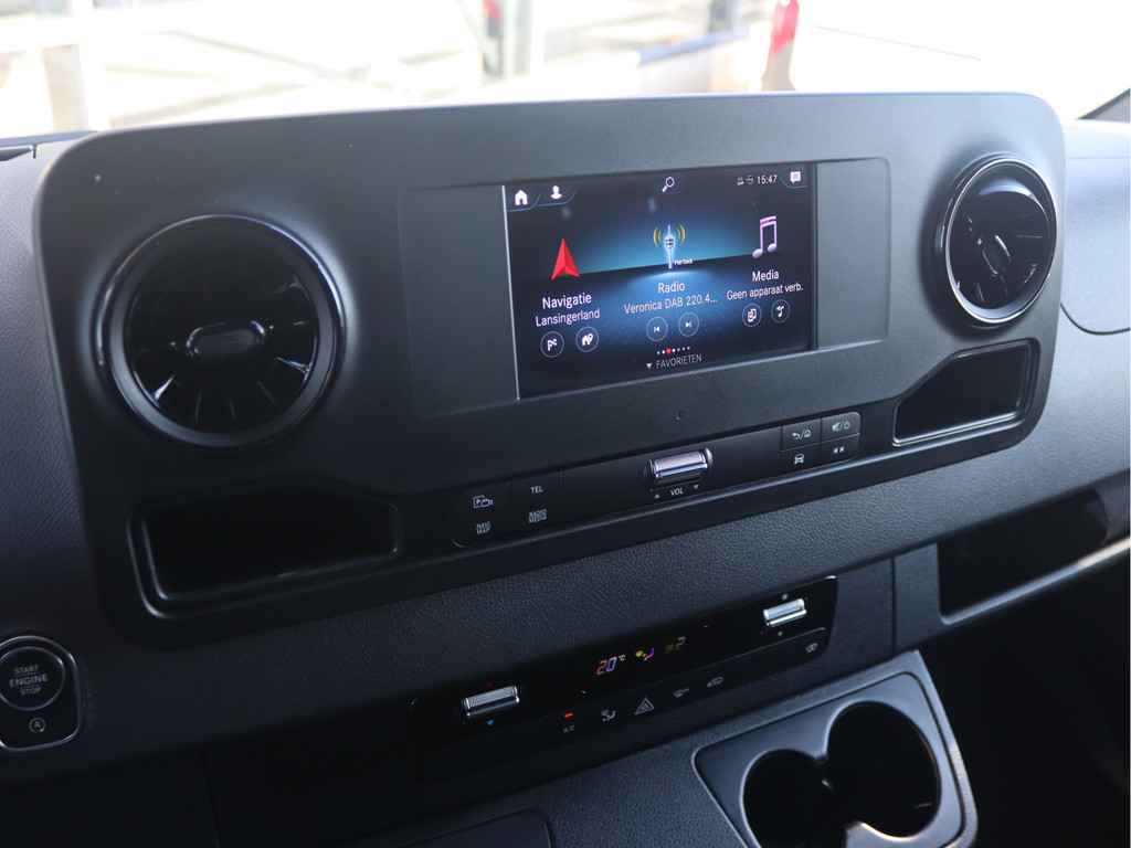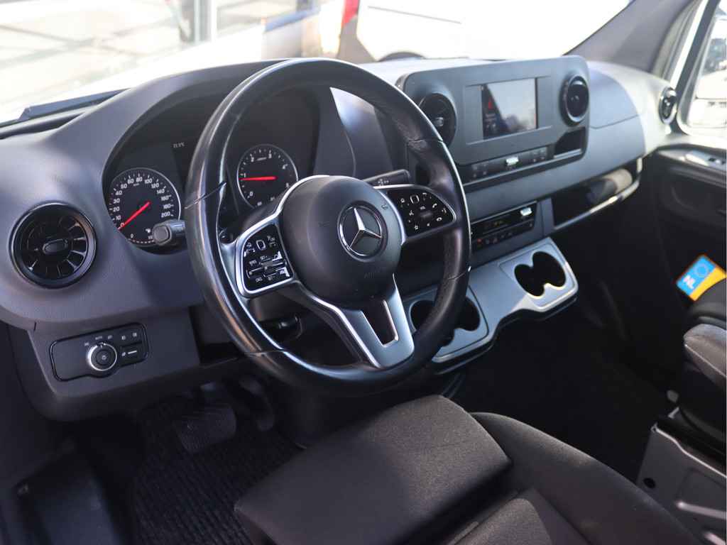 De Sprinter is o.a. voorzien van airco, 7" MBUX multimediasysteem met Apple CarPlay en Android Auto, trekhaak met 3.500 kg trekgewicht, geveerde bestuurdersstoel, Distronic cruise control (houdt zelf afstand), parkeersensoren voor en achter en volledige laadruimte betimmering.